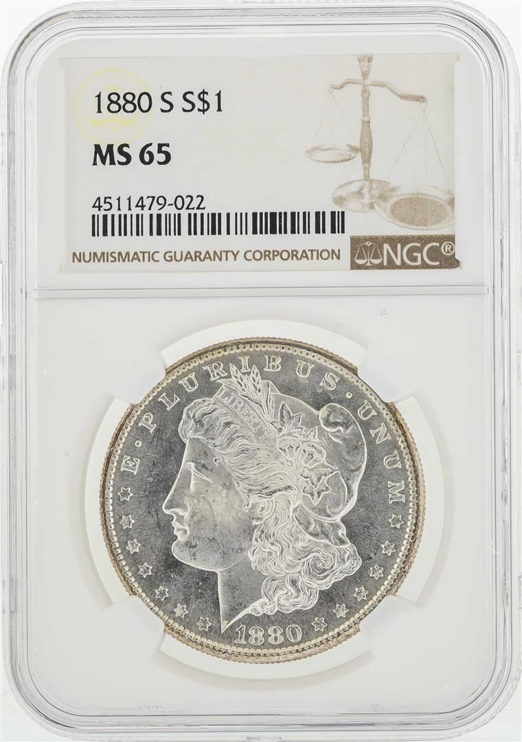One 1880-S $1 Morgan Silver Dollar Coin NGC MS65. NGC Certified.