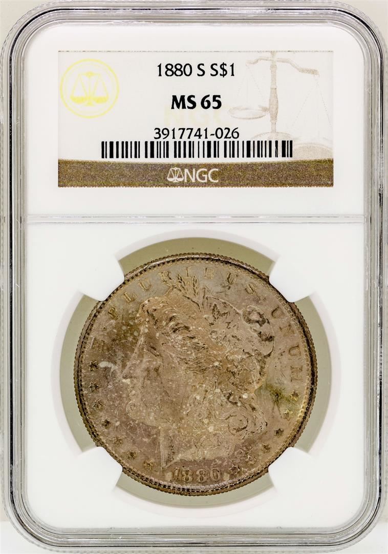 One 1880-S $1 Morgan Silver Dollar Coin NGC MS65. NGC Certified.