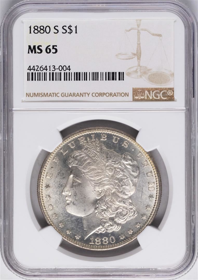 One 1880-S $1 Morgan Silver Dollar Coin NGC MS65. NGC Certified.