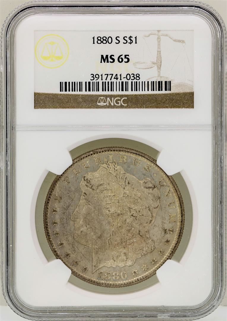 One 1880-S $1 Morgan Silver Dollar Coin NGC MS65. NGC Certified.