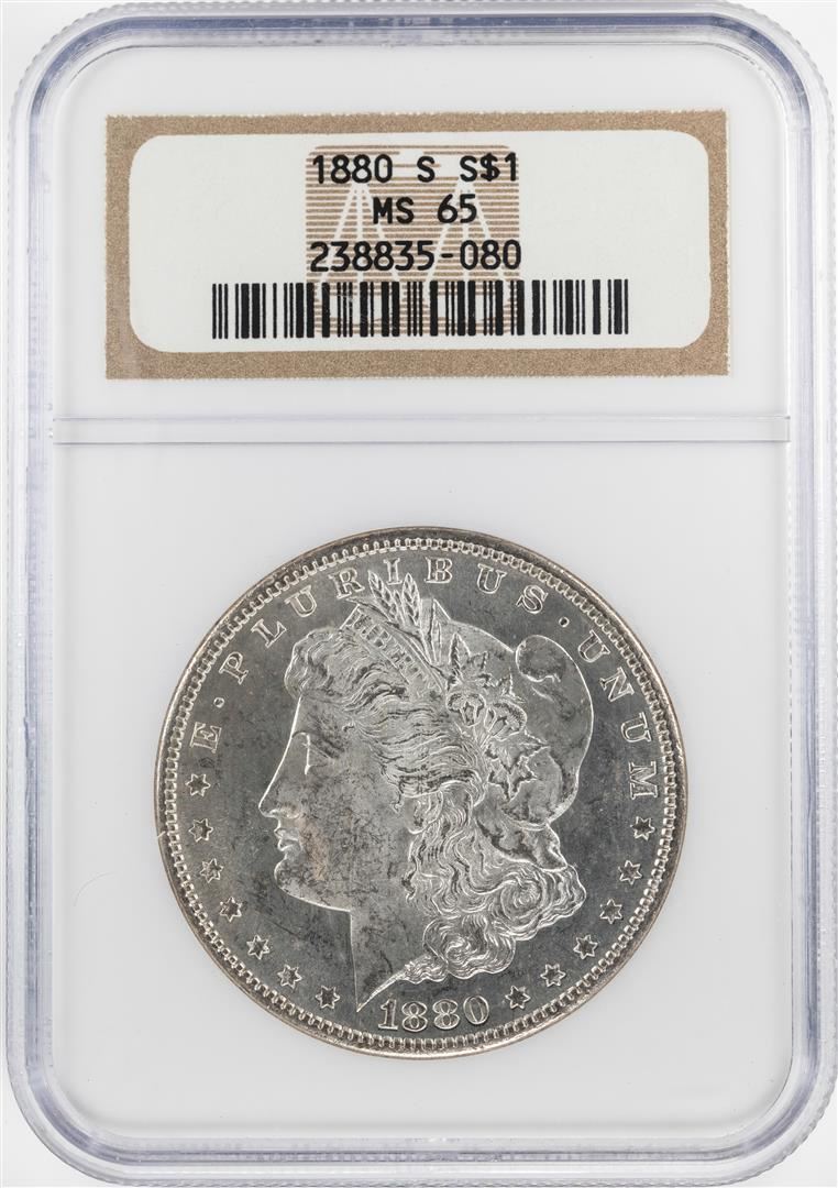One 1880-S $1 Morgan Silver Dollar Coin NGC MS65. NGC Certified.
