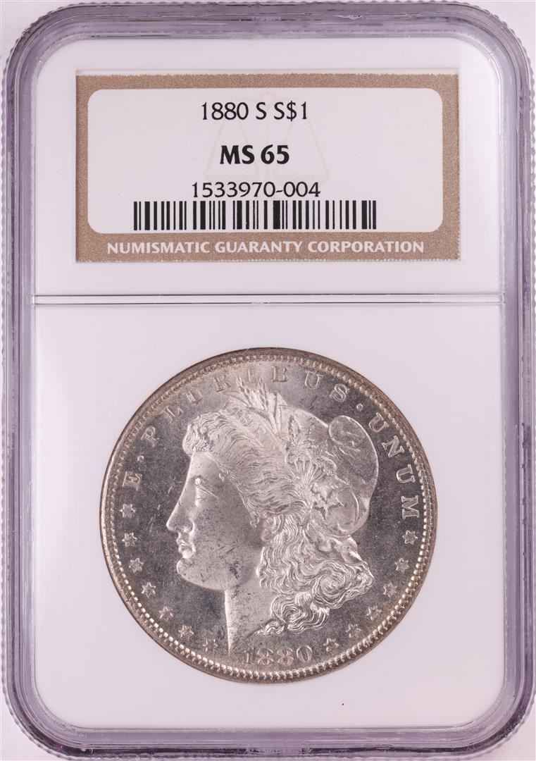One 1880-S $1 Morgan Silver Dollar Coin NGC MS65. NGC Certified.