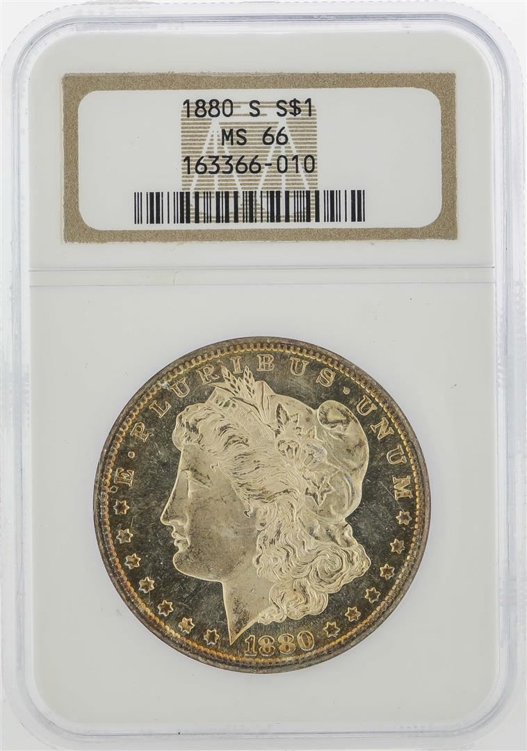 One 1880-S $1 Morgan Silver Dollar Coin NGC MS66. NGC Certified.
