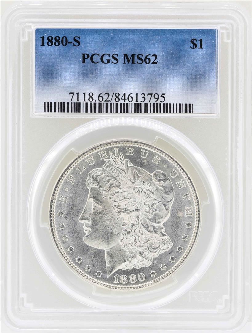 One 1880-S $1 Morgan Silver Dollar Coin PCGS MS62. PCGS Graded.