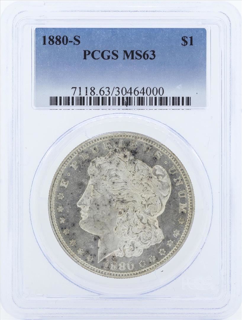 One 1880-S $1 Morgan Silver Dollar Coin PCGS MS63. PCGS Graded.