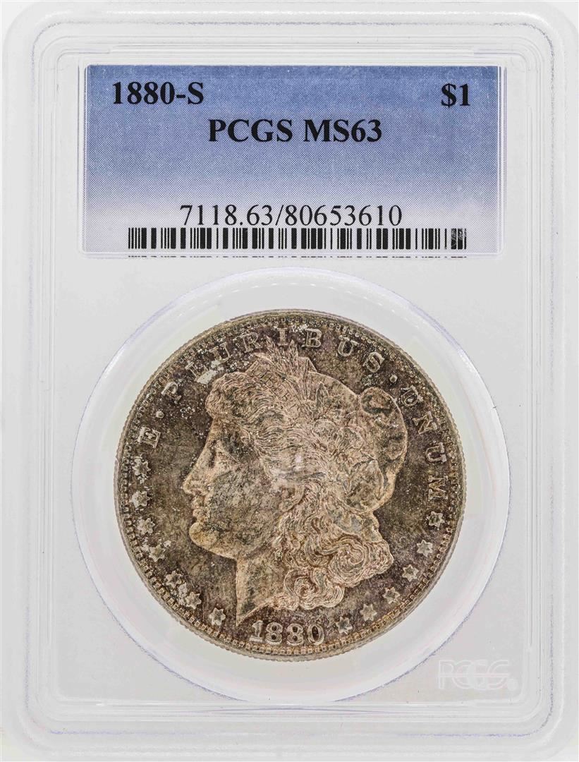 One 1880-S $1 Morgan Silver Dollar Coin PCGS MS63. PCGS Graded.