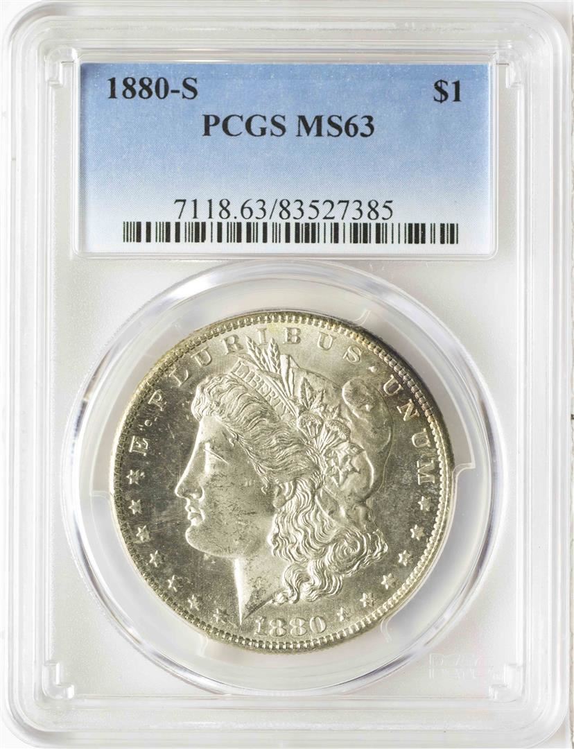 One 1880-S $1 Morgan Silver Dollar Coin PCGS MS63. PCGS Graded.