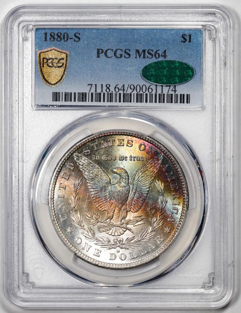 1880-S $1 Morgan Silver Dollar Coin PCGS MS64 Amazing Reverse Toning CAC