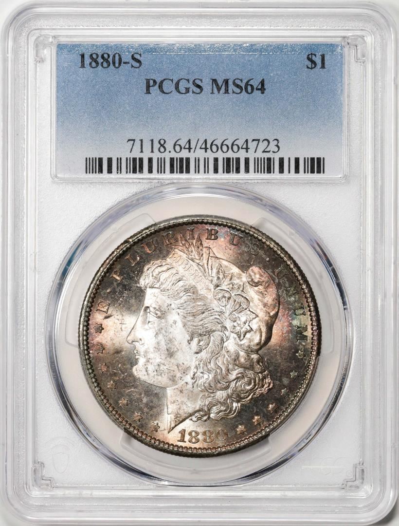 1880-S $1 Morgan Silver Dollar Coin PCGS MS64 Amazing Toning