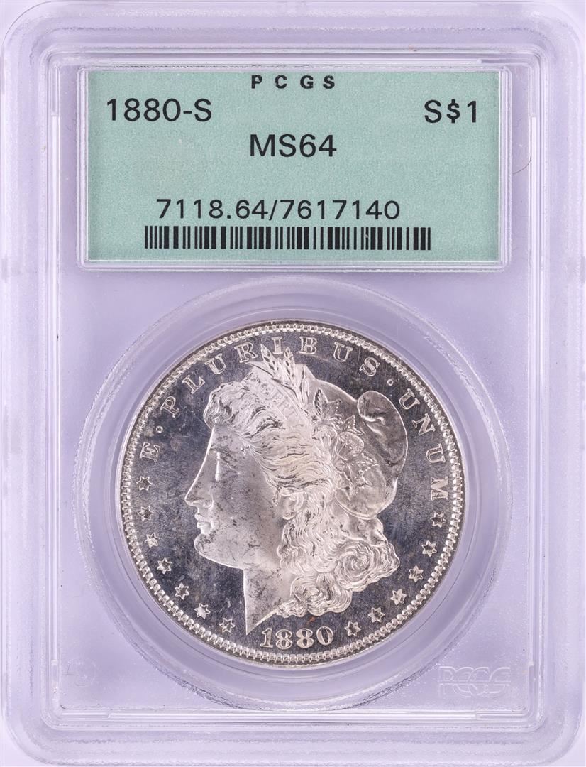 One 1880-S $1 Morgan Silver Dollar Coin PCGS MS64 OGH. PCGS Graded.