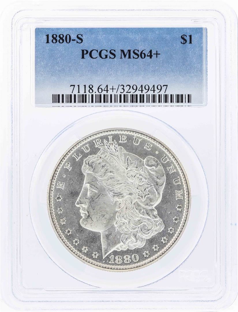 One 1880-S $1 Morgan Silver Dollar Coin PCGS MS64+. PCGS Graded.
