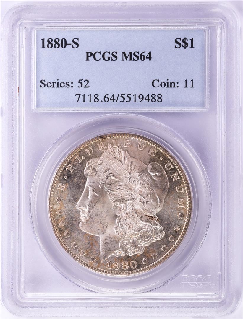 One 1880-S $1 Morgan Silver Dollar Coin PCGS MS64. PCGS Graded.