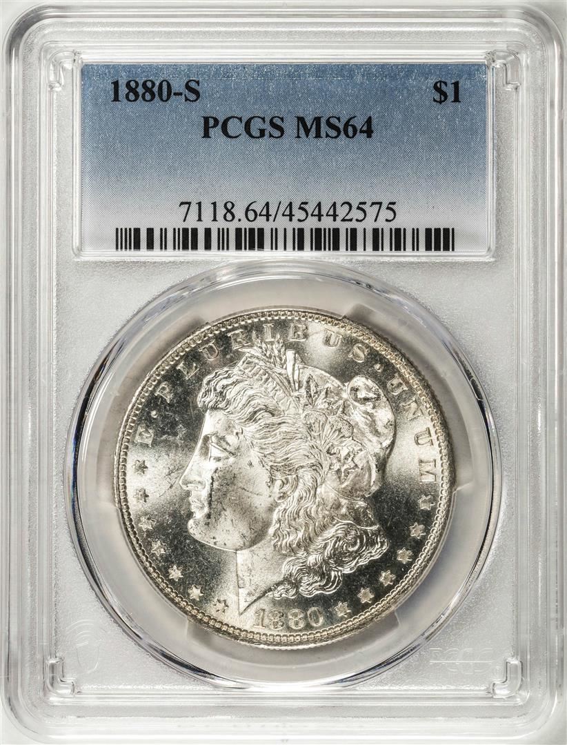 One 1880-S $1 Morgan Silver Dollar Coin PCGS MS64. PCGS Graded.