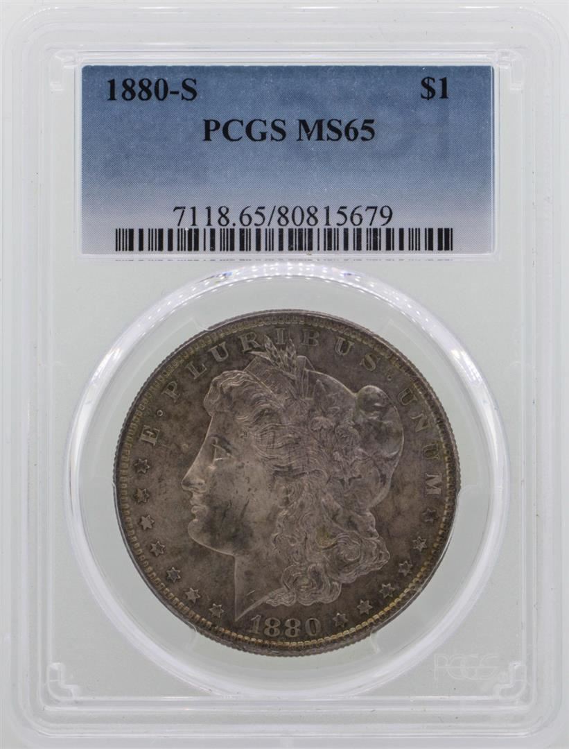 One 1880-S $1 Morgan Silver Dollar Coin PCGS MS65 NICE TONING. PCGS Graded.