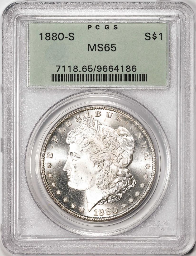 1880-S $1 Morgan Silver Dollar Coin PCGS MS65 Old Green Holder