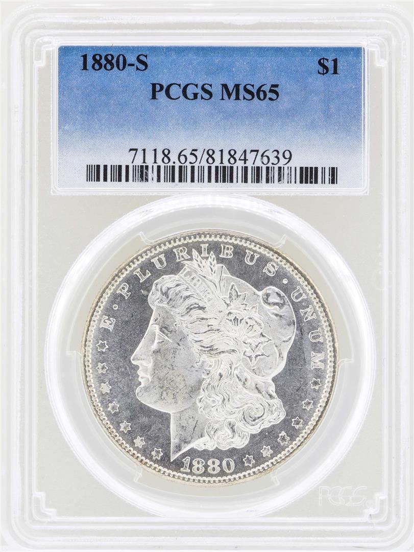 One 1880-S $1 Morgan Silver Dollar Coin PCGS MS65. PCGS Graded.