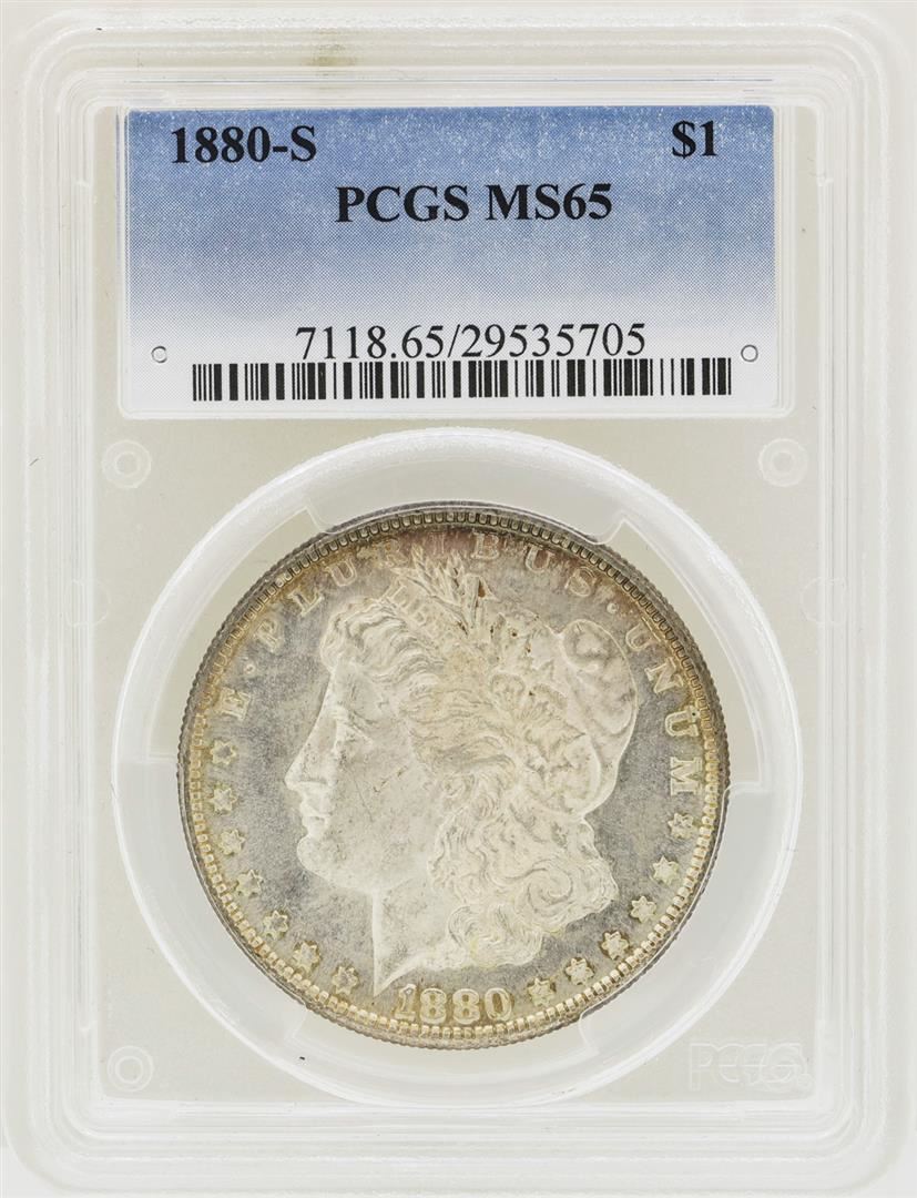One 1880-S $1 Morgan Silver Dollar Coin PCGS MS65. PCGS Graded.