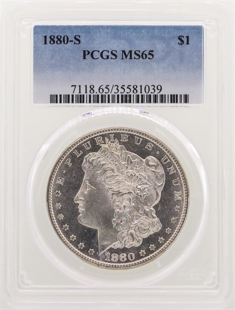 One 1880-S $1 Morgan Silver Dollar Coin PCGS MS65. PCGS Graded.