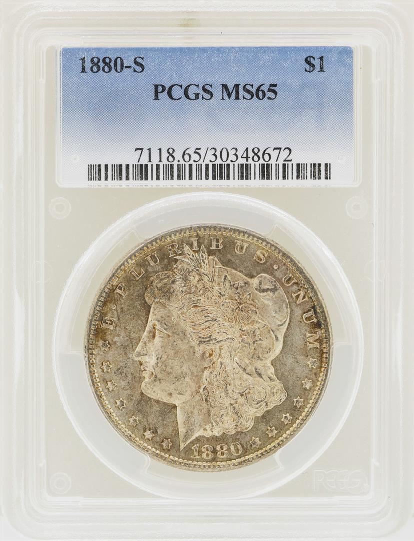 One 1880-S $1 Morgan Silver Dollar Coin PCGS MS65. PCGS Graded.