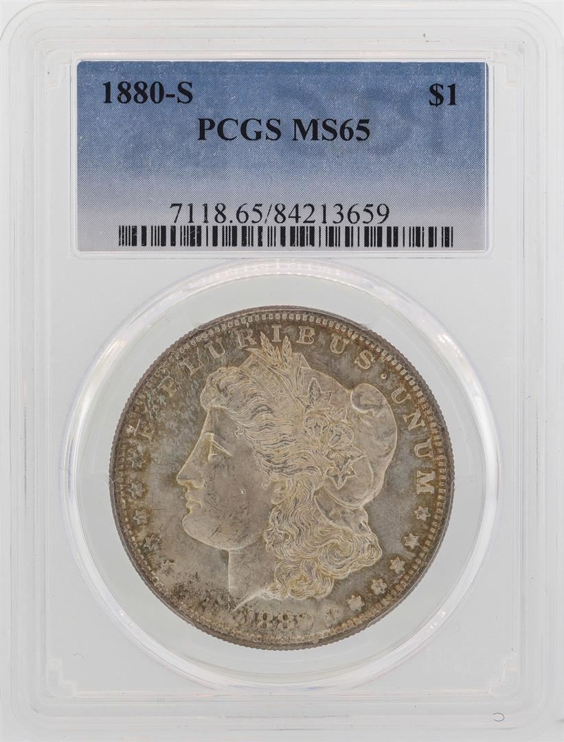 One 1880-S $1 Morgan Silver Dollar Coin PCGS MS65. PCGS Graded.