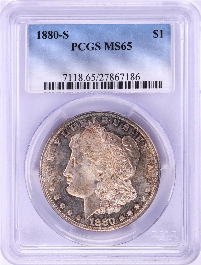 One 1880-S $1 Morgan Silver Dollar Coin PCGS MS65. PCGS Graded.