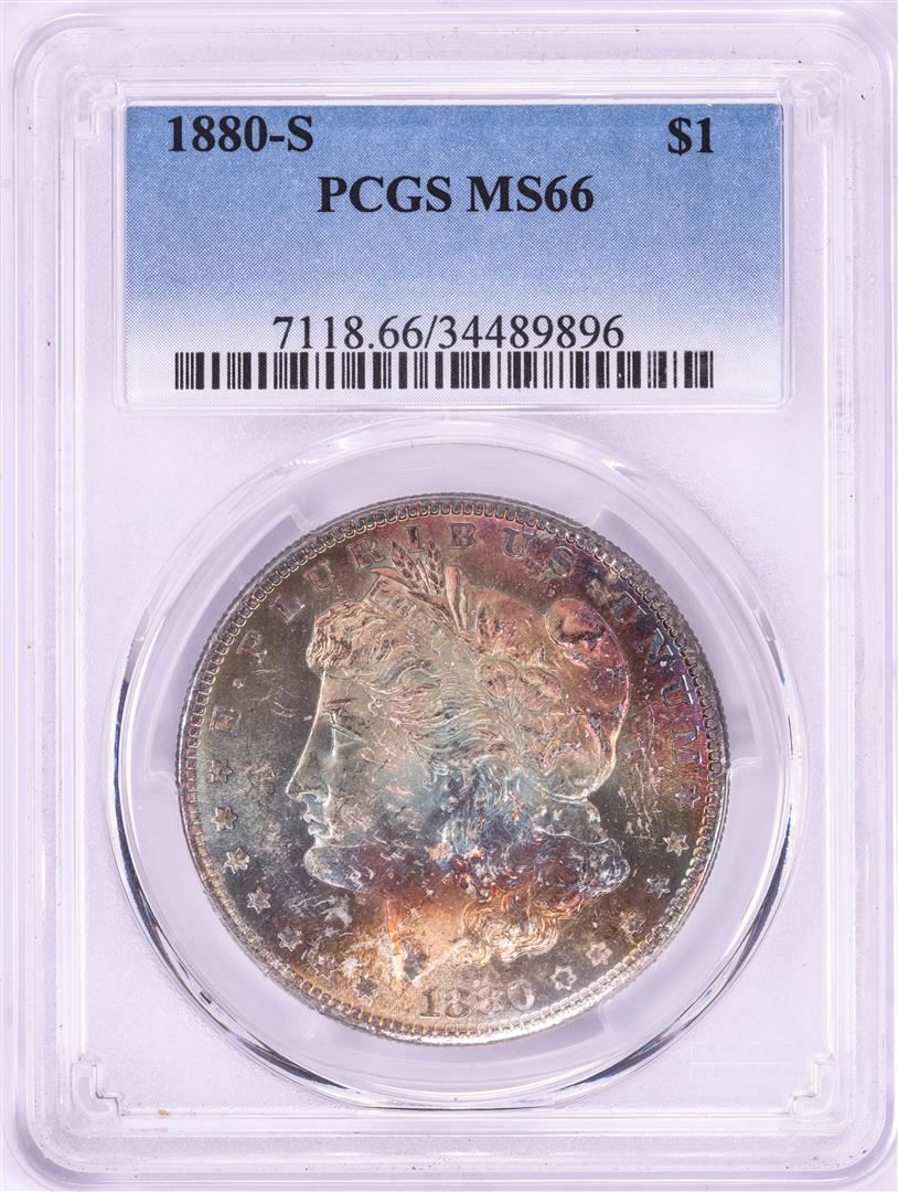 One 1880-S $1 Morgan Silver Dollar Coin PCGS MS66 Amazing Toning. PCGS Graded.