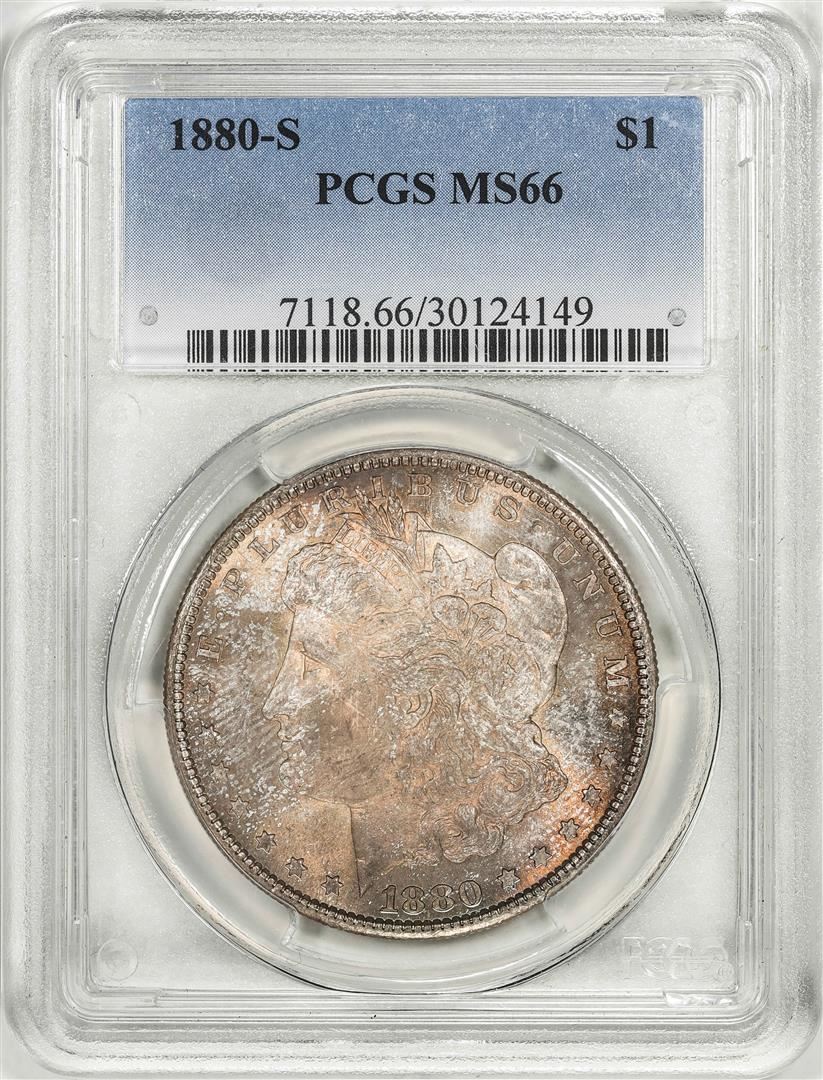 One 1880-S $1 Morgan Silver Dollar Coin PCGS MS66 Amazing Toning. PCGS Graded.