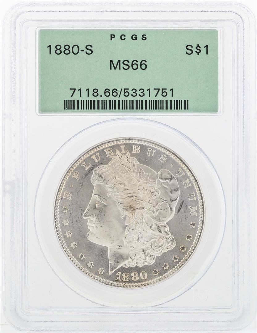 One 1880-S $1 Morgan Silver Dollar Coin PCGS MS66. PCGS Graded.