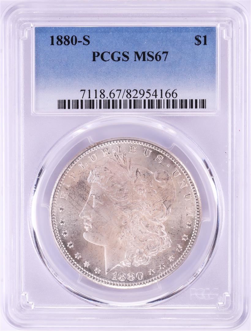 One 1880-S $1 Morgan Silver Dollar Coin PCGS MS67. PCGS Graded.