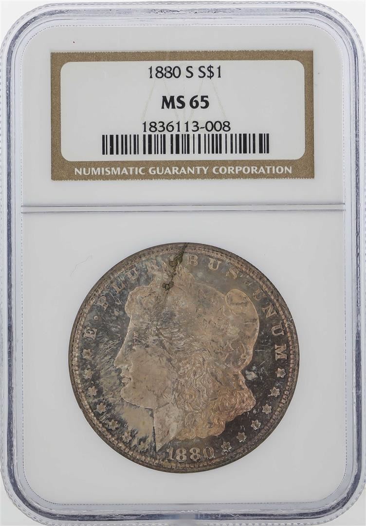 One 1880 S $1 Morgan Silver Dollar CoinNGC MS65. NGC Certified.