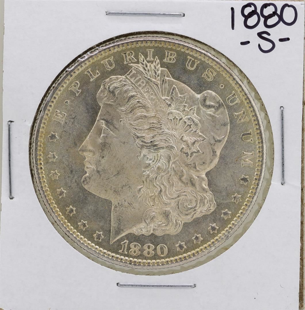 One 1880-S $1 Morgan Silver Dollar Coin.