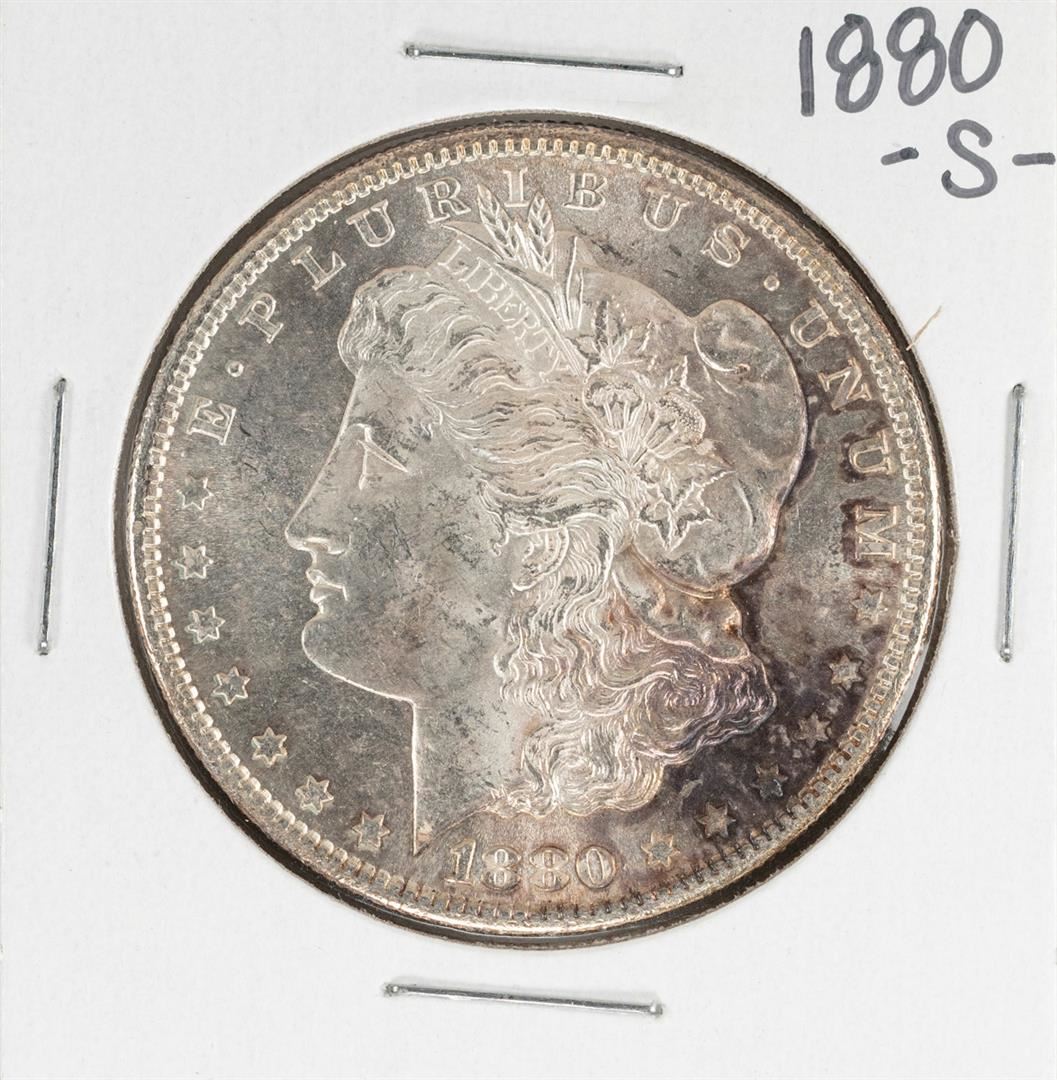 One 1880-S $1 Morgan Silver Dollar Coin.