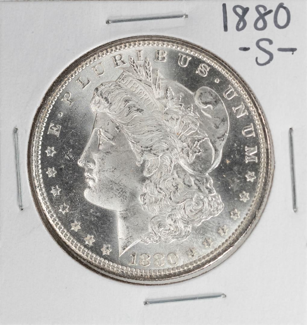 One 1880-S $1 Morgan Silver Dollar Coin.