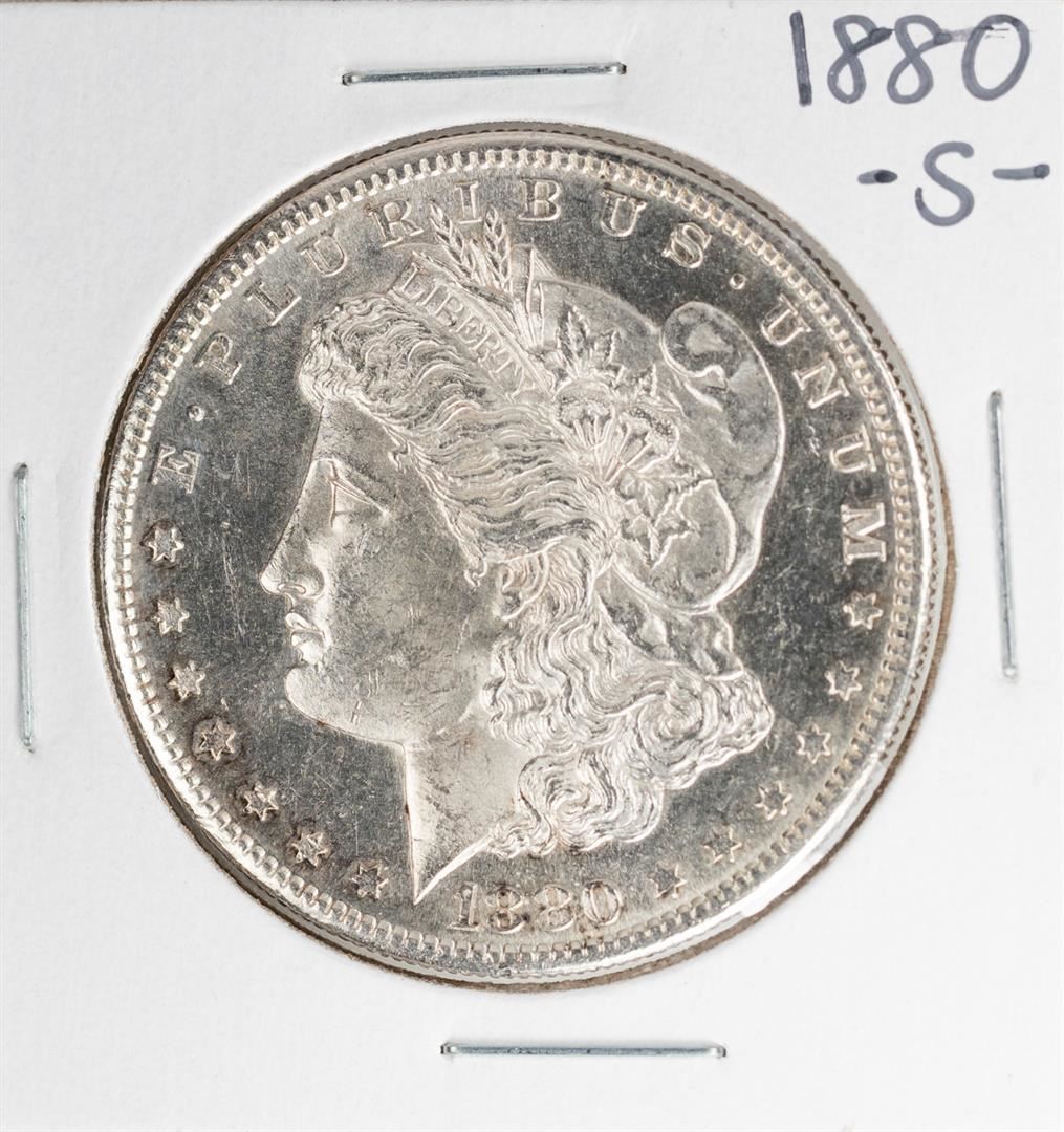 One 1880-S $1 Morgan Silver Dollar Coin.