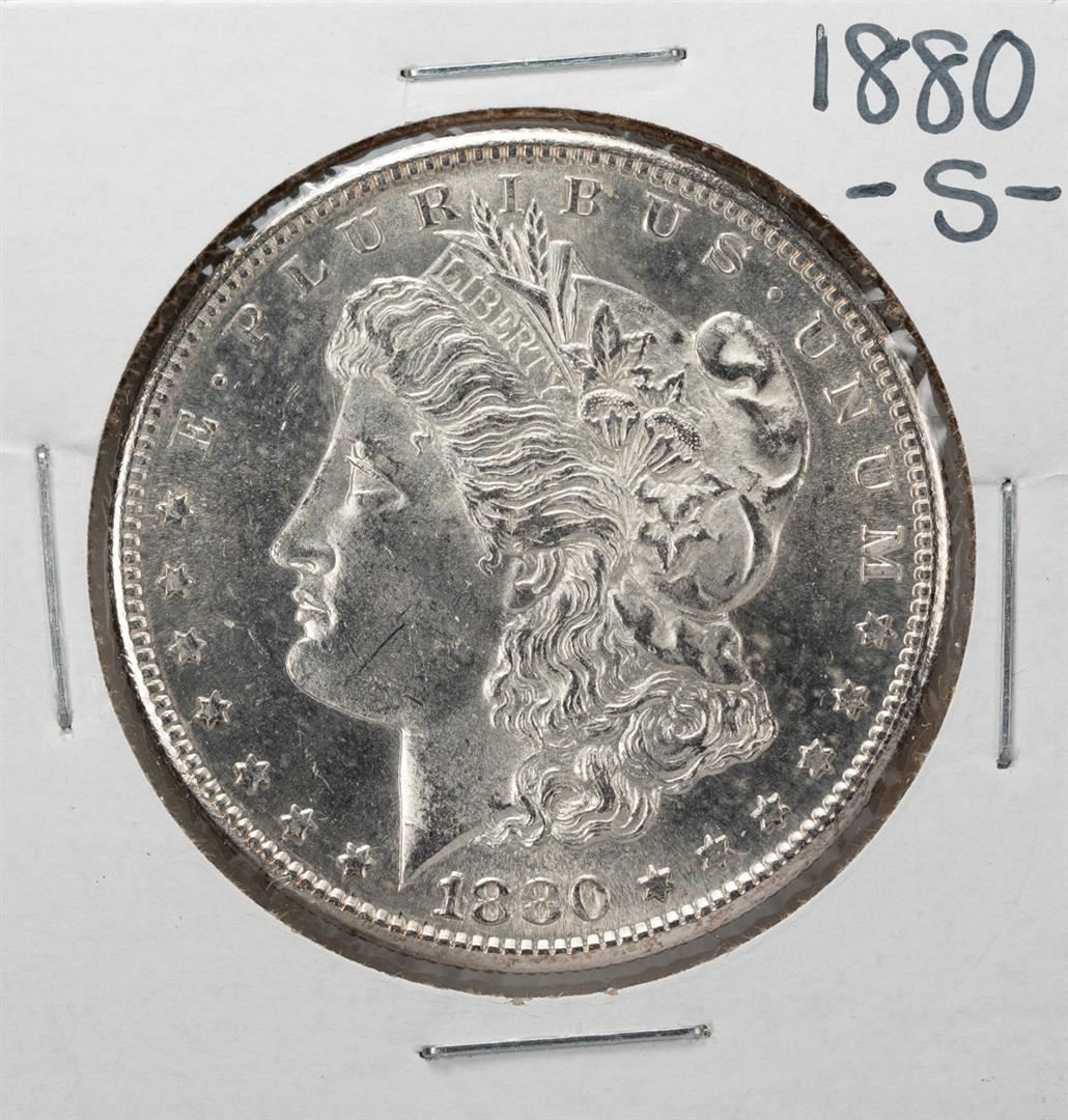 One 1880-S $1 Morgan Silver Dollar Coin.