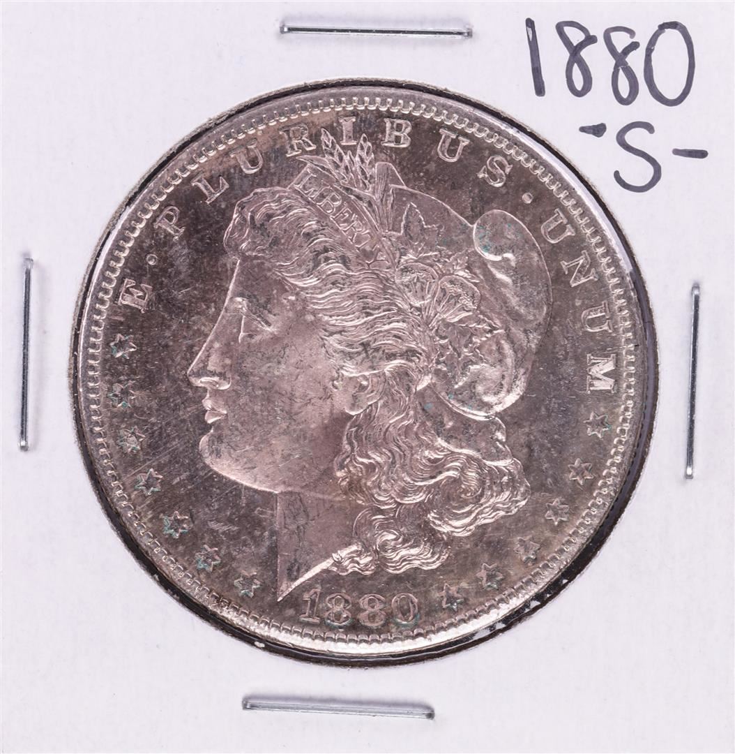 One 1880-S $1 Morgan Silver Dollar Coin.