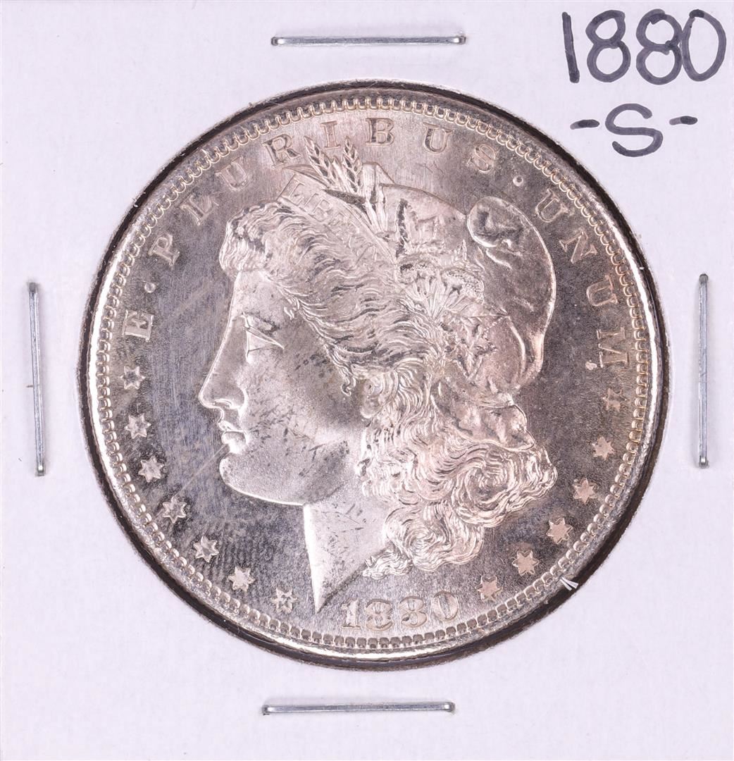 One 1880-S $1 Morgan Silver Dollar Coin.