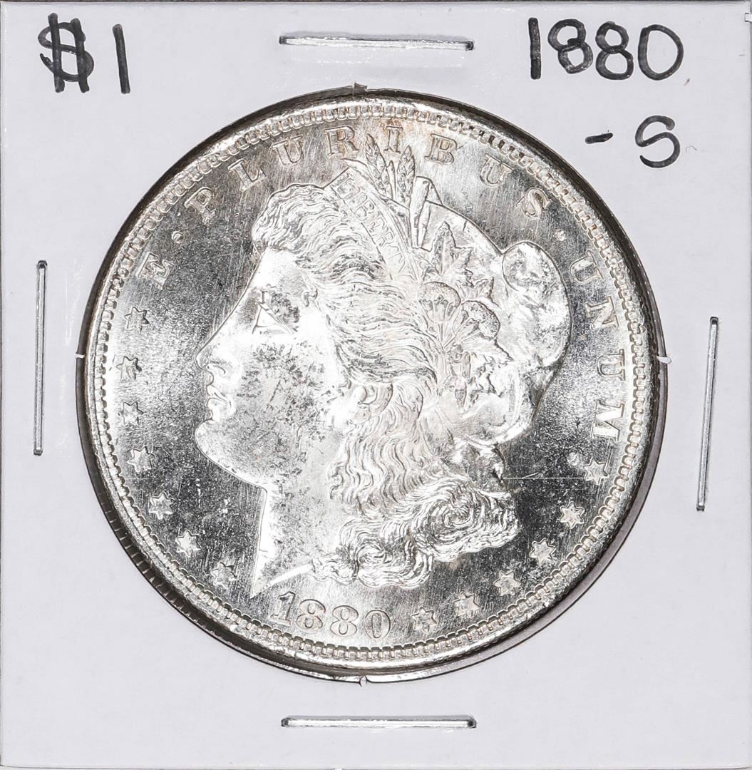 One 1880-S $1 Morgan Silver Dollar Coin.