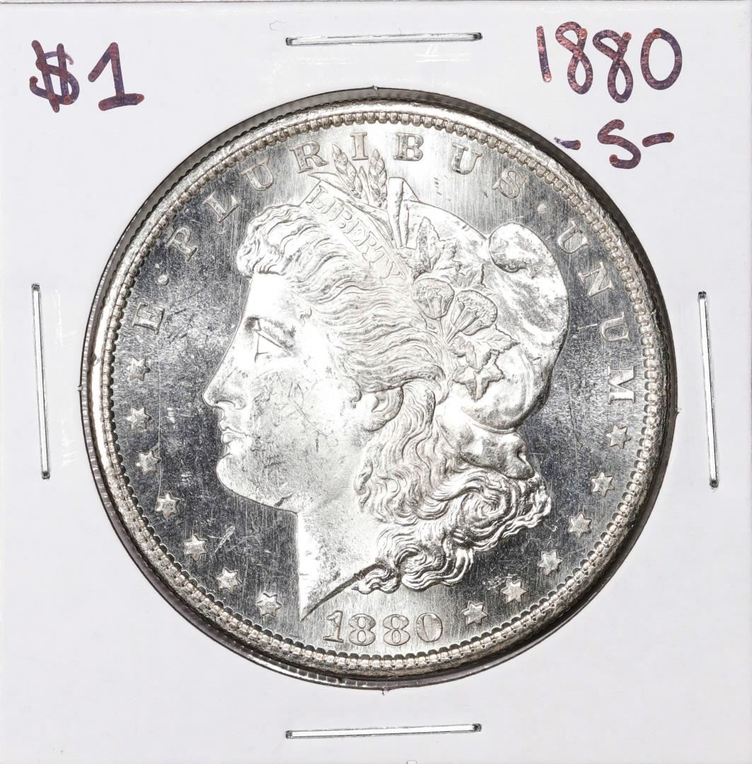 One 1880-S $1 Morgan Silver Dollar Coin.