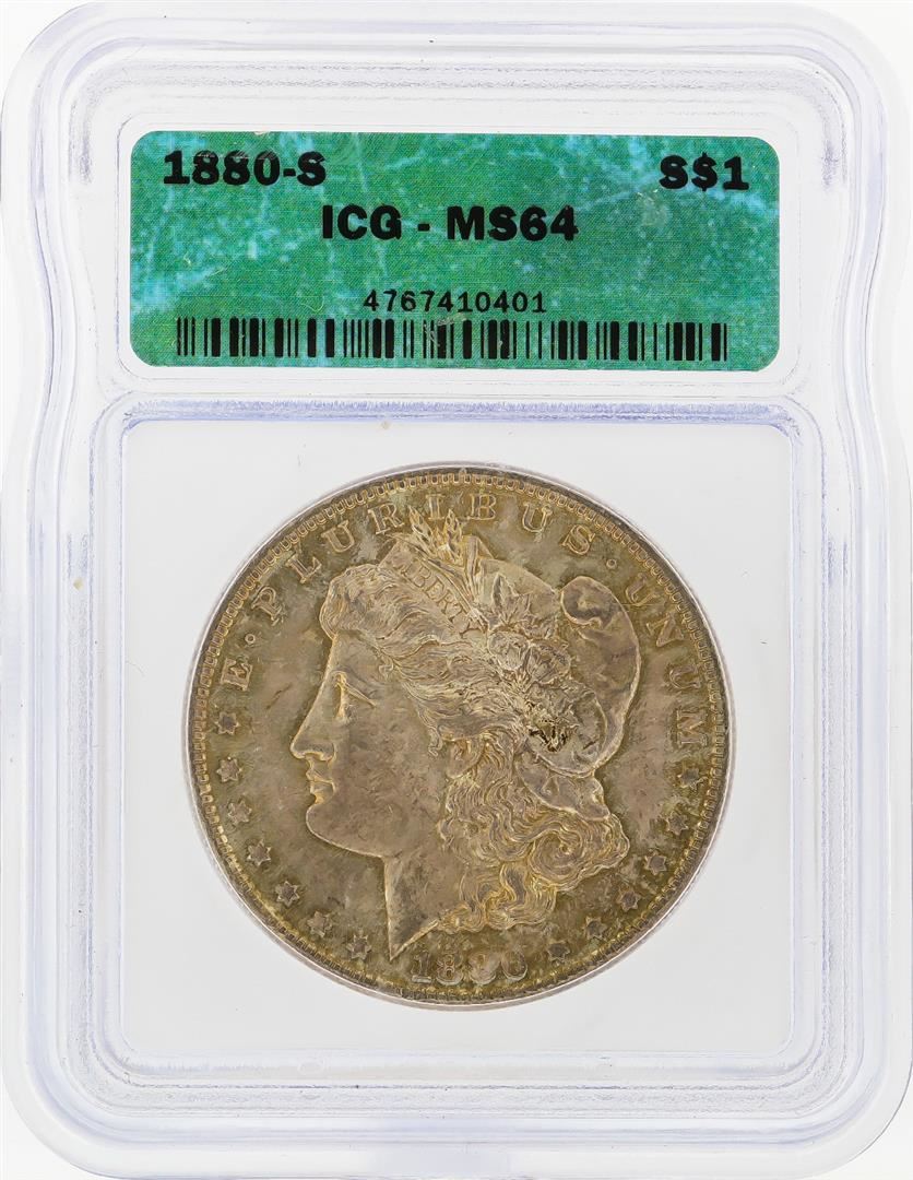 One 1880-S $1 Morgan Silver Dollar ICG Graded MS64. ICG Certified.