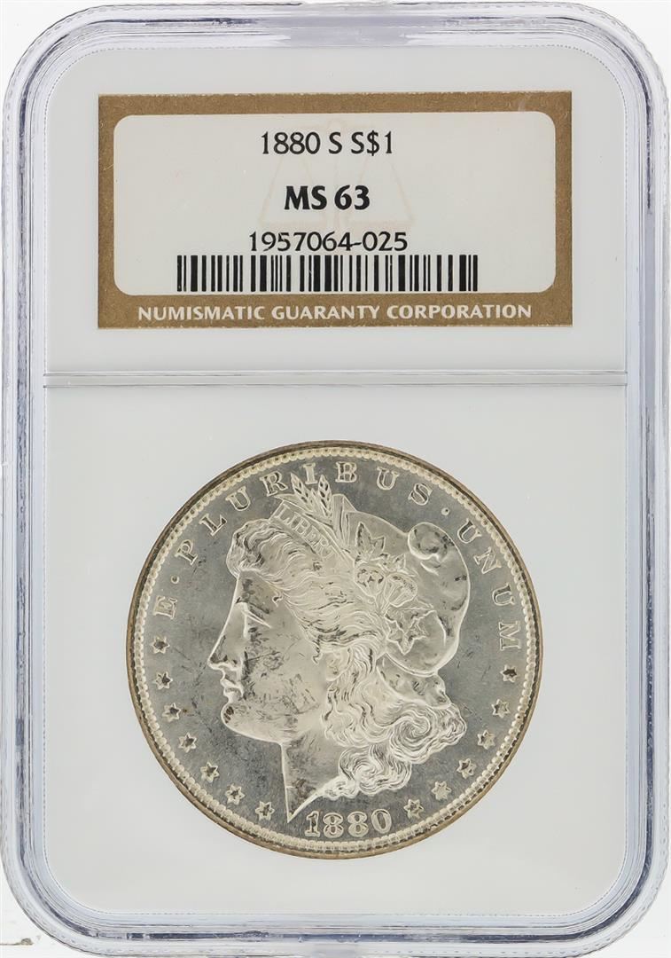 One 1880-S $1 Morgan Silver Dollar NGC Graded MS63. NGC Certified.