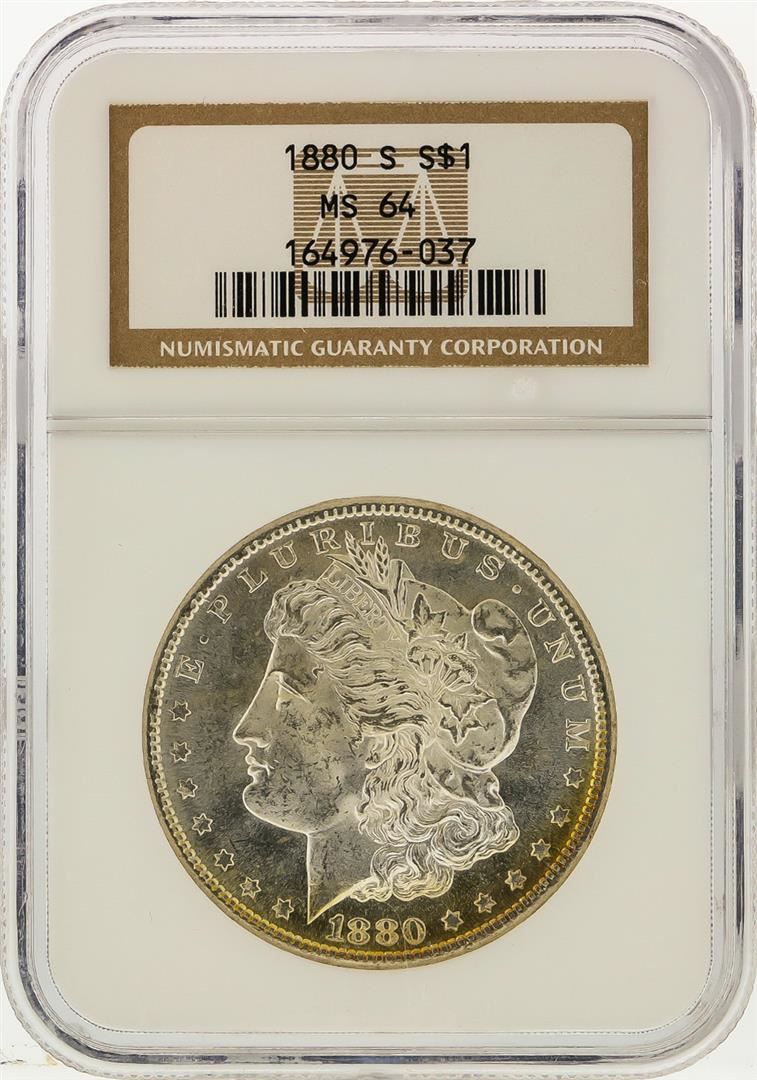 One 1880-S $1 Morgan Silver Dollar NGC Graded MS64. NGC Certified.