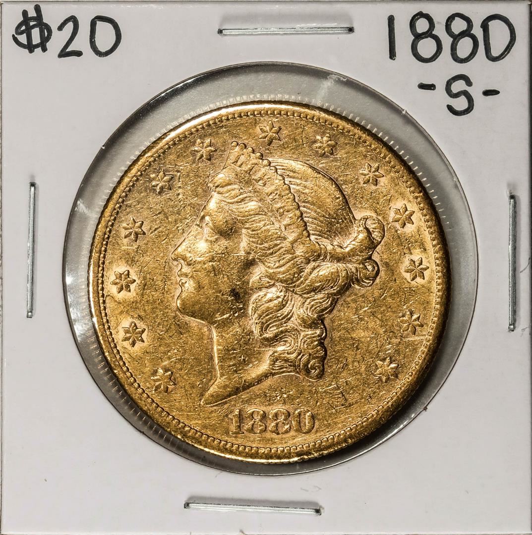 One 1880-S $20 Liberty Head Double Eagle Gold Coin.