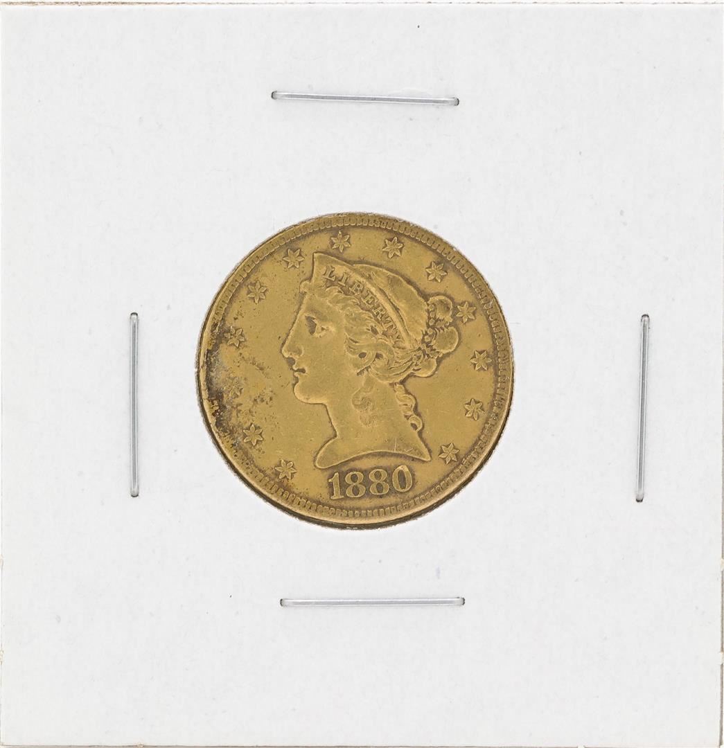 One 1880-S $5 Liberty Head Half Eagle Gold Coin.