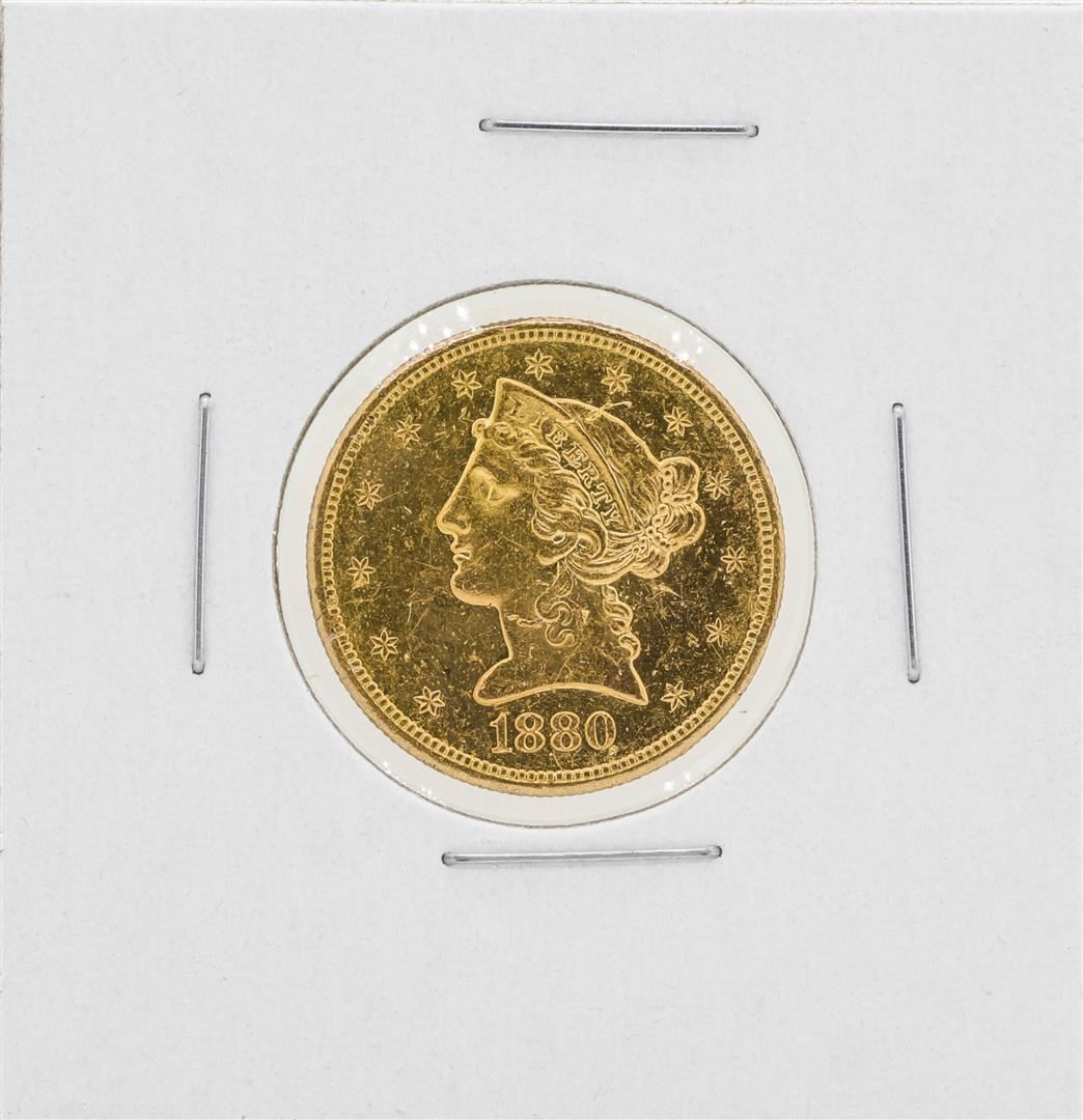 One 1880-S $5 Liberty Head Half Eagle Gold Coin.