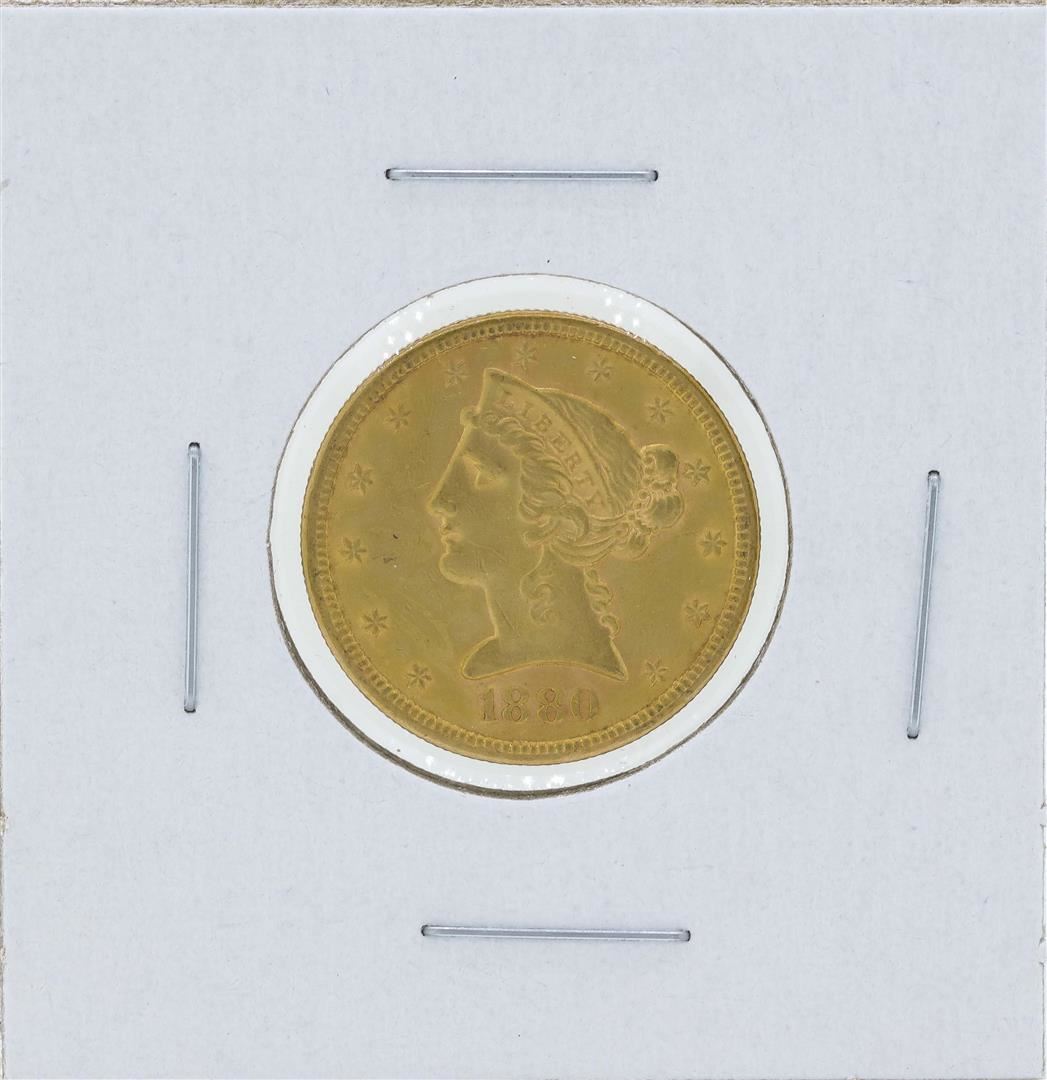 One 1880-S $5 Liberty Head Half Eagle Gold Coin.