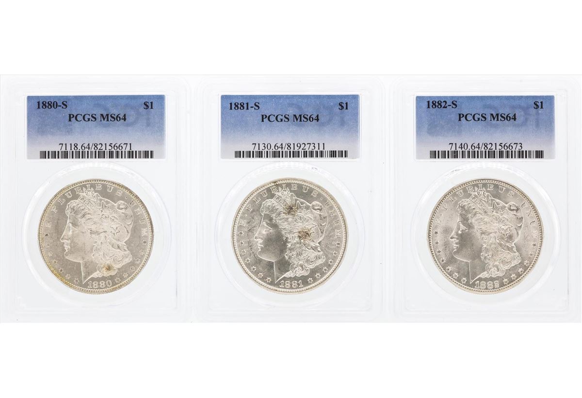 One 1880-S to 1882-S $1 Morgan Silver Dollar Coins PCGS MS64. PCGS Graded.