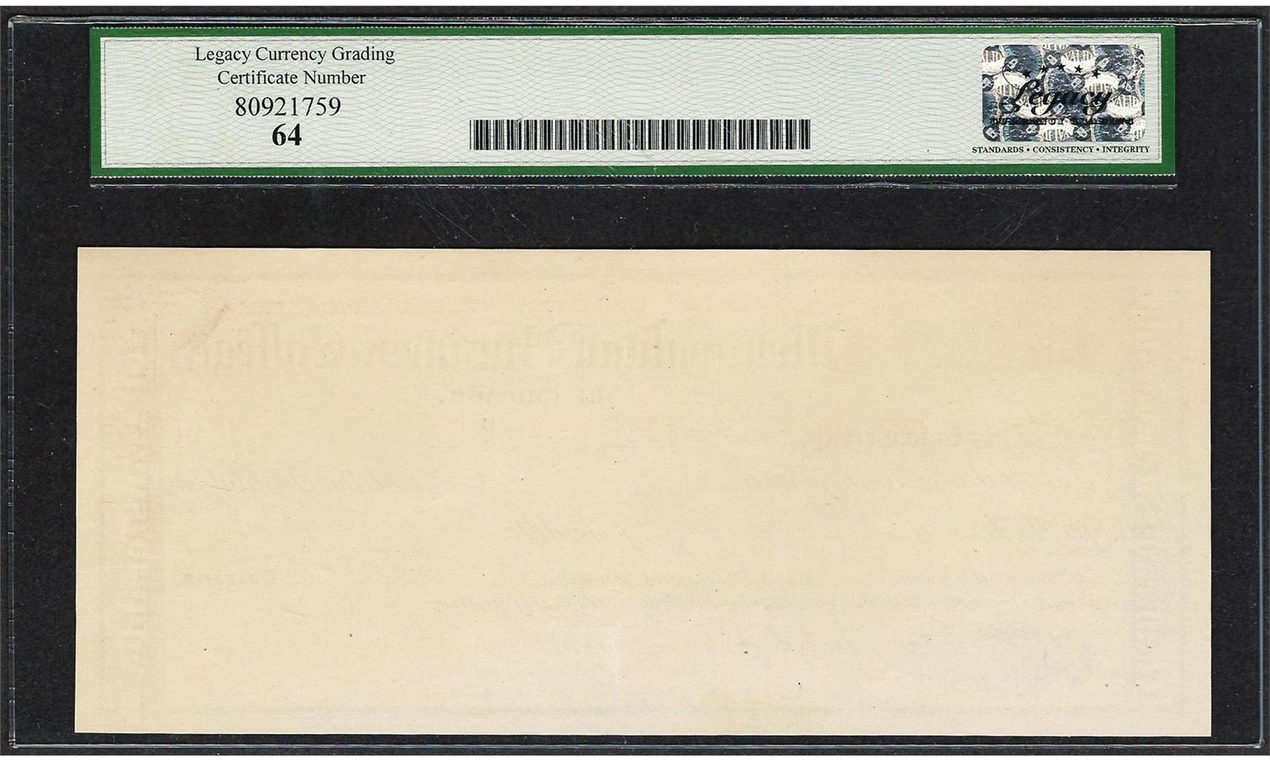 One 1880's Metropolitan Business College Chicago, IL Obsolete Check Legacy Very Choice New 64. Legacy Graded.