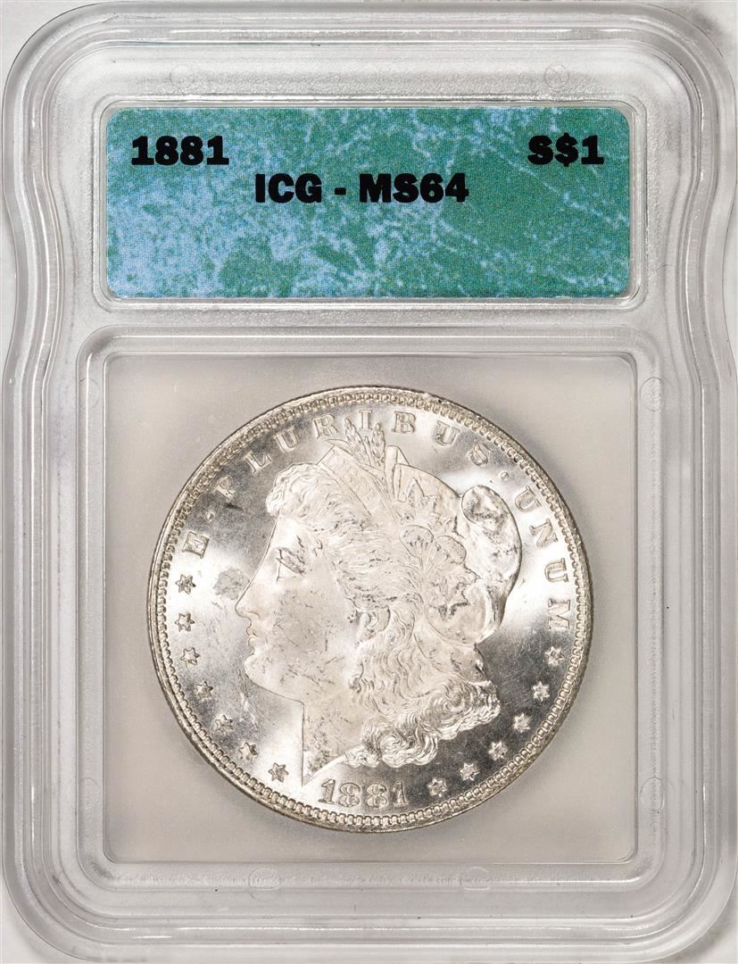 One 1881 $1 Morgan Silver Dollar Coin ICG MS64. ICG Certified.