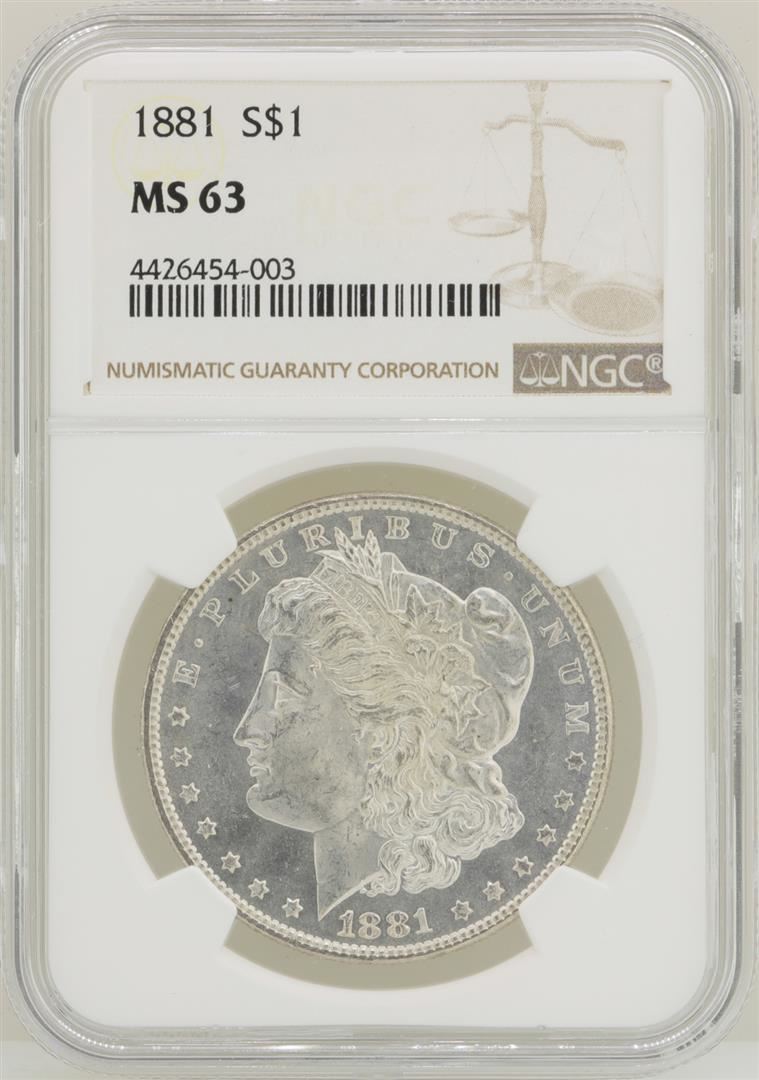 One 1881 $1 Morgan Silver Dollar Coin NGC MS63. NGC Certified.